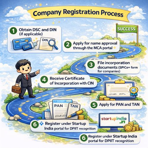 - Startup Registration in India is the process of legally establishing a new business entity and obtaining recognition under the Government of India’s Startup India initiative. It allows entrepreneurs to operate within a structured legal framework while enjoying various benefits such as tax exemptions, funding support, and ease of compliance.